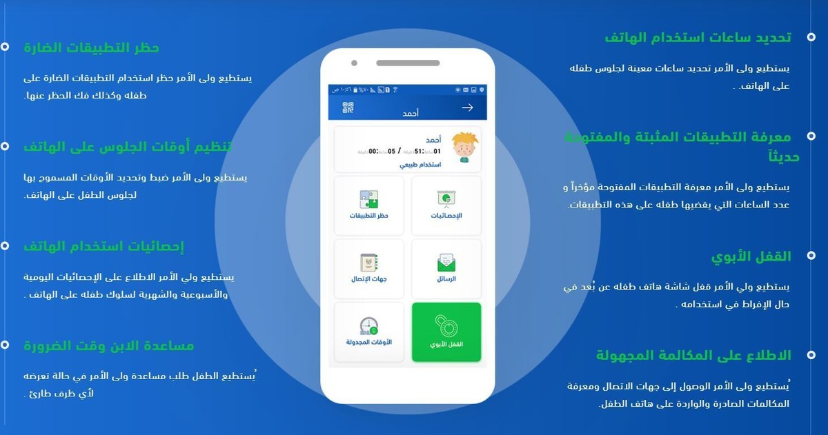 تطبيق أمان المجاني للمتابعة الأبوية لإستخدام الأبناء للأجهزة الذكية https://i.suar.me/7A1ym/l تطبيق أمان يوفر لأولياء الأمور سهولة متابعة إستخدام أطفالهم للهواتف الذكية من خلال الميزات التالية: - تعيين أوقات محددة لاستخدام الأجهزة من قبل الأبناء، لضبط أوقات الاستخدام - معرفة التطبيقات المثبتة والمفتوحة مؤخرا على جهاز الابن وإحصائيات - معرفة المكالمات الصادرة والواردة والرسائل - إشعار ولي الأمر بالاتصال الوارد للابن وقت حدوثه. - توفير ميزة الاشعارات الالية، وطلب الإذن لتنزيل الابن لتطبيق جديد. - امكانية حظر أي من التطبيقات المثبتة ومنع الأبناء من استخدامها وكذلك فك الحظر عنها - توفير ميزة القفل المجدول بأوقات محددة - القفل الأبوي لجهاز الابن: حيث يمكن أولياء الأمور من قفل جهاز الطفل مباشرة وغيرها من الميزات، https://i.suar.me/wvNLM/l تعريف بروشور: http://in2world.be/AmaanApp/AboutAmaan.pdf https://i.suar.me/Vpeqr/l + رابط التطبيق على جوجل بلاى https://play.google.com/store/apps/d...world.aman.com https://i.suar.me/gxz1Q/l |