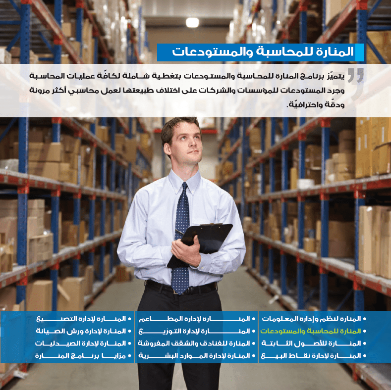 أفضل برامج ونظم إدارة الحسابات والمعلومات والأعمال نظام المحاسبة والمستودعات نظام المحاسبة وإدارة العقارات نظام محاسبة الأصول الثابتة نظام محاسبة نقاط البيع نظام محاسبة المطاعم والاجهزة الكفية نظام الفنادق والشقق المفروشة نظام الصرافة والحوالات نظام محاسبة ورش الصيانة نظام محاسبة التوزيع ميزات برامجنا مرونة عالية وسهولة في الاستخدام وسرعة في الاداء دعم نظام الفروع التكامل والترابط بين جميع اجزاء البرنامج مع الحسابات دليل حسابات متوافق مع الانظمة المحاسبية سيطرة كاملة ودقيقة للحاسبات في المنشأة اعتماد الجرد الدوري أو الجرد المستمر قائمة الدخل وقائمة التدفقات النقدية متطابقة مع المعايير المحاسبية حسابات عمولات البائعين ومندوبي المبيعات الموازنة التقديرية للحسابات أو مراكز الكلفة امكانية ارفاق وثائق لجميع المستندات إدارة ومراقبة ضريبة القيمة المضافة طباعة الشيكات ووالكمبيالات مصمم تقارير احترافي – فاست ريبورت دعم فني مميز تحديث مجاني لنفس الإصدار تعدد اللغات والعملات والصلاحيات التوافق مع جميع انظمة التشغيل Windows لغة البرمجة C++ وقاعدة البيانات SQL SERVER لمزيد من المعلومات زوو موقعنا : http://nitcotek.com/nitcoland/ او التواصل على الرقم : 0532409092 https://i.suar.me/pXEw8/l https://i.suar.me/XPEpJ/l https://i.suar.me/5pvnW/l https://i.suar.me/2eKYK/l |
