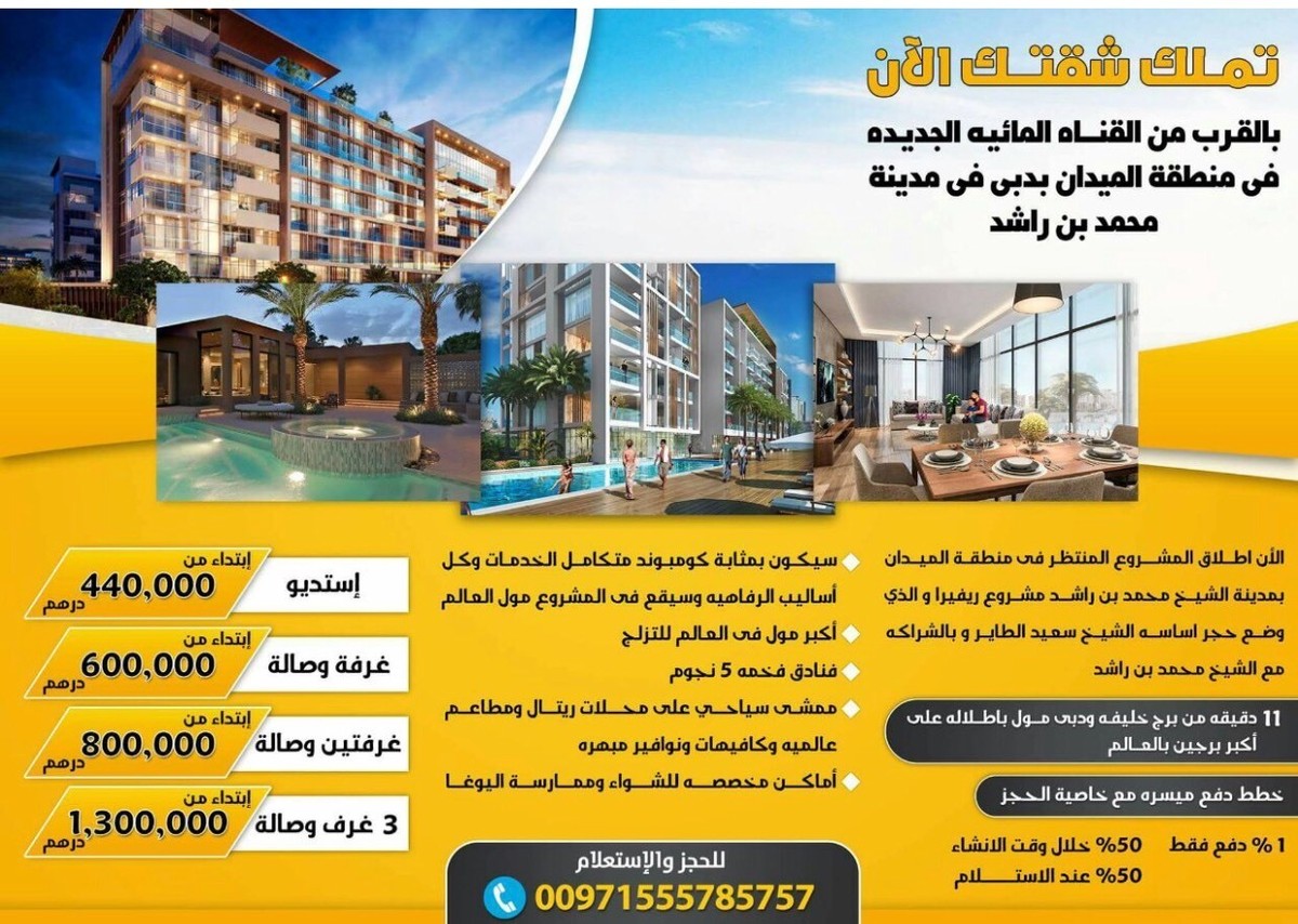 شقق فاخرة للبيع في دبي *، استلام خلال عام ، والأقساط على 25 سنة العدد محدود جدا https://i.suar.me/LPv4n/l تملك شقتك الان بالقرب من القناة المائيه الجديدة فى منطقة الميدان ب دبى فى مدينة محمد بن راشد ال مكتوم. إطلاق المشروع المنتظر فى منطقة الميدان ب مدينة الشيخ محمد بن راشد (مشروع ريفيرا) من شركة عزيزي للتطوير العقاري و الذي وضع حجر اساسه الشيخ سعيد الطاير و بالشراكة مع الشيخ محمد بن راشد 11دقيقه من برج خليفه و دبي مول بإطلاله على أكبر برجين بالعالم سيكون بمثابة كومباوند متكامل لخدمات وكل أساليب الرفاهيه وسيقع فى المشروع مول العالم أكبر مول في العالم للتزلج فنادق فخمه_5نجوم ، ممشي سياحي على محلات ريتال و مطاعم عالميه و كافيهات و نوافير مبهره أماكن مخصصه لل شواء و ممارسة اليوغا ، خط المترو الجديد خطط دفع ميسره مع خاصية الحجز دفع فقط ١٪ ٥٠٪ خلال وقت الانشاء ٥٠٪ عند الاستلام مع إمكانية تمويل المتبقي عند الاستلام لمدة 25 عام استديوهات ابتداء من ٤٤٠ الف غرفة و صاله ابتداء من ٦٠٠ الف غرفتين و صاله ابتداء من ٨٠٠ الف ثلاث غرف و صاله ابتداء من ١.٣ مليون للتفاصيل الرجاء الإتصال أو الواتساب على الرقم 00971555785757 شركة عزيزي للتطوير العقاري – مشروع ريفيرا – مشروع الميدان في دبي – شقق للبيع في دبي – عقارات دبي – استثمار في دبي – Azizi Riviera Apartment Meydan , Azizi Riviera , Azizi Riviera at Meydan City Dubai , |