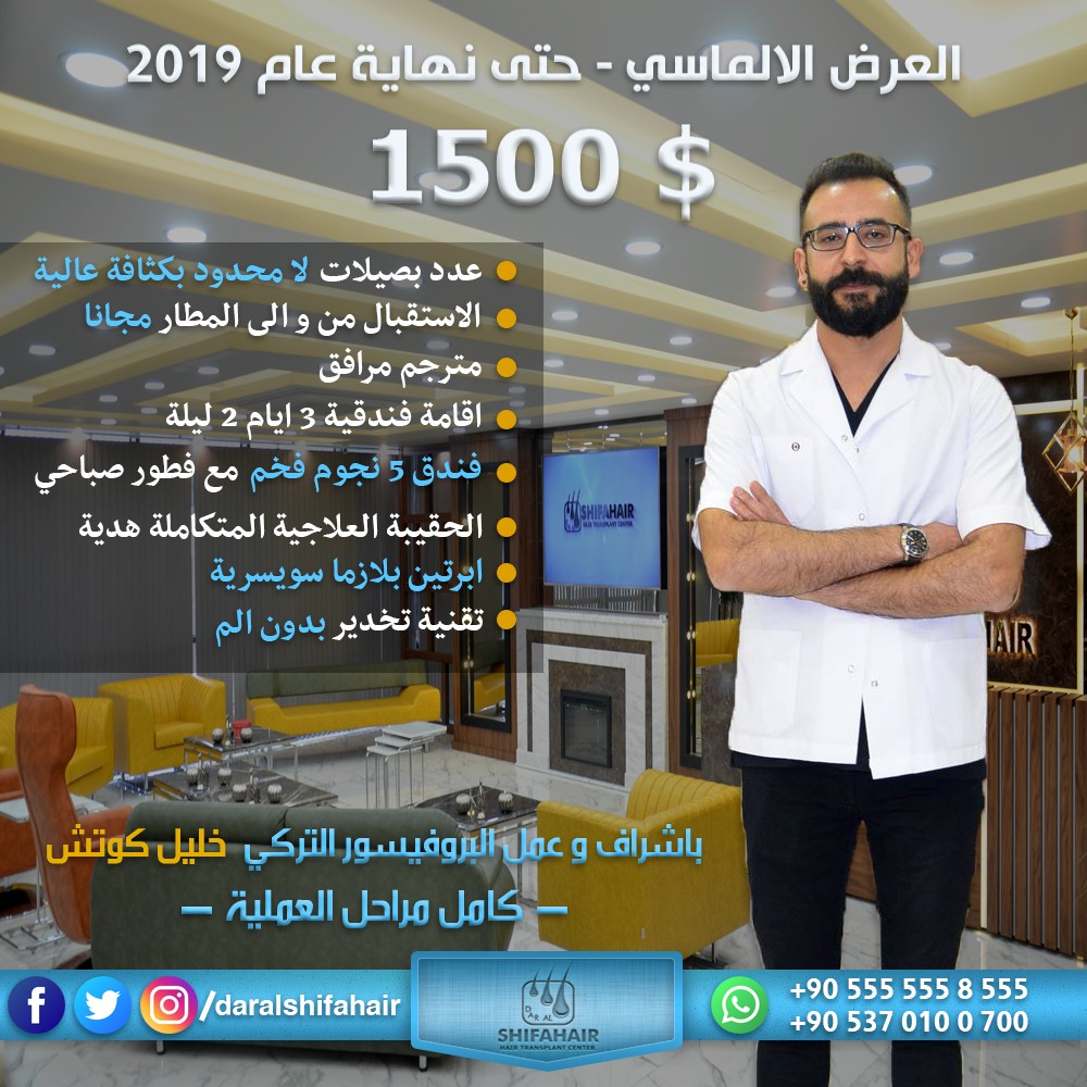 دار الشفاء لزراعة الشعر باشراف الطبيب البيروفيسور العالمي خليل كوتش Daralshifahair Dr_HalilKoc Hair Transplant للاستفسار Arabic +905555558555 +905370100700 905011000000+ 905555557555+ https://i.suar.me/jVpOz/l https://i.suar.me/8EZpL/l https://i.suar.me/3N76m/l https://i.suar.me/rNr7z/l |